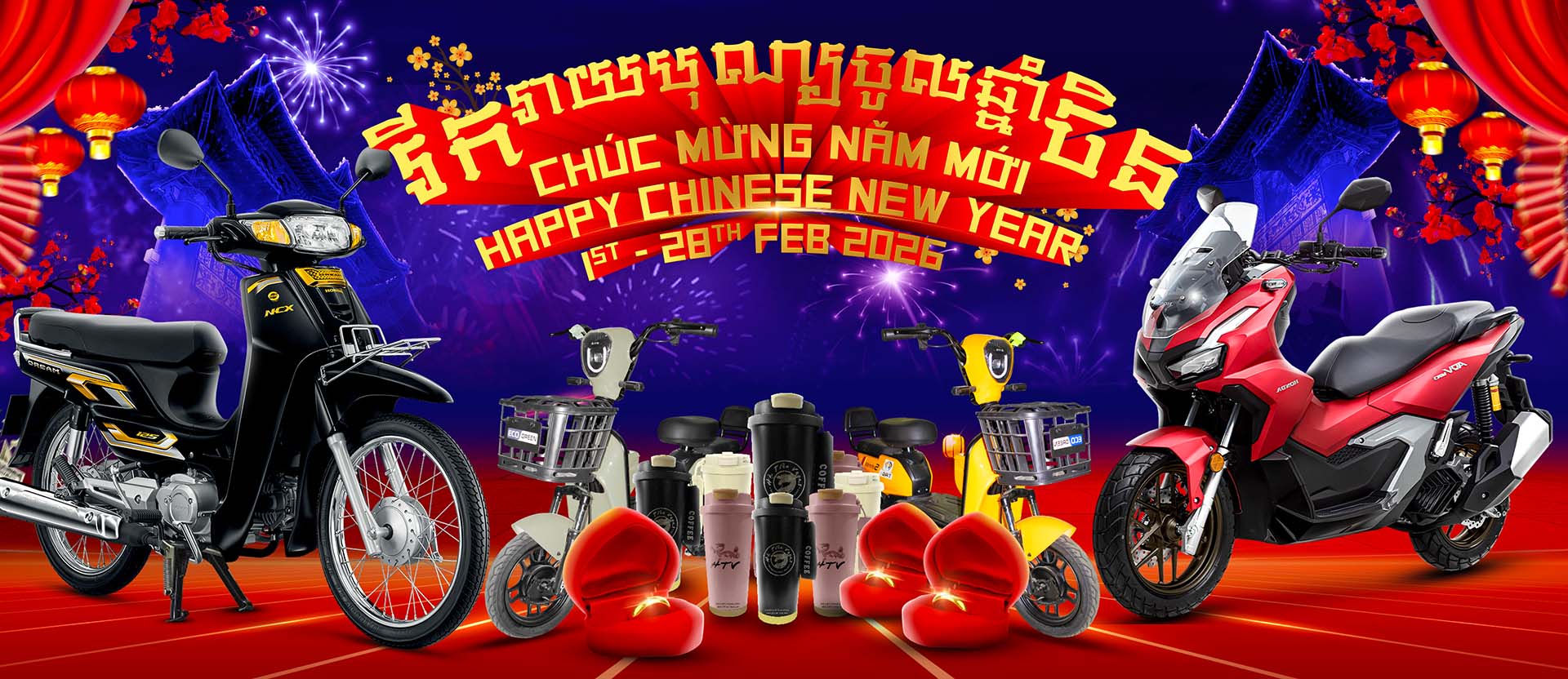 Players have the opportunity to win valuable rewards including a Honda Dream motorbike, gold rings, electric motorbikes, and the special Quarterly Grand Prize – Honda PCX.